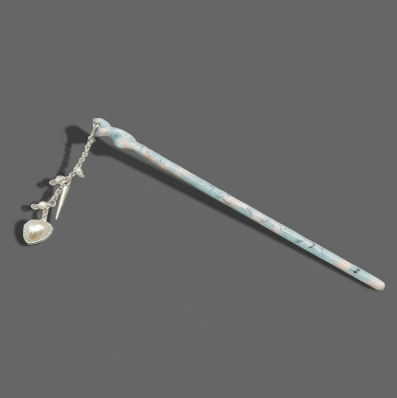Crafted from lustrous layered acetate, this artifact catches and refracts the light, displaying a depth that mimics the most rare, polished Moonstone Altar relic. It is finished with a delicate, dangling charm—featuring two carved Fairy Dustflorals and a single Starlight Shard bead.
