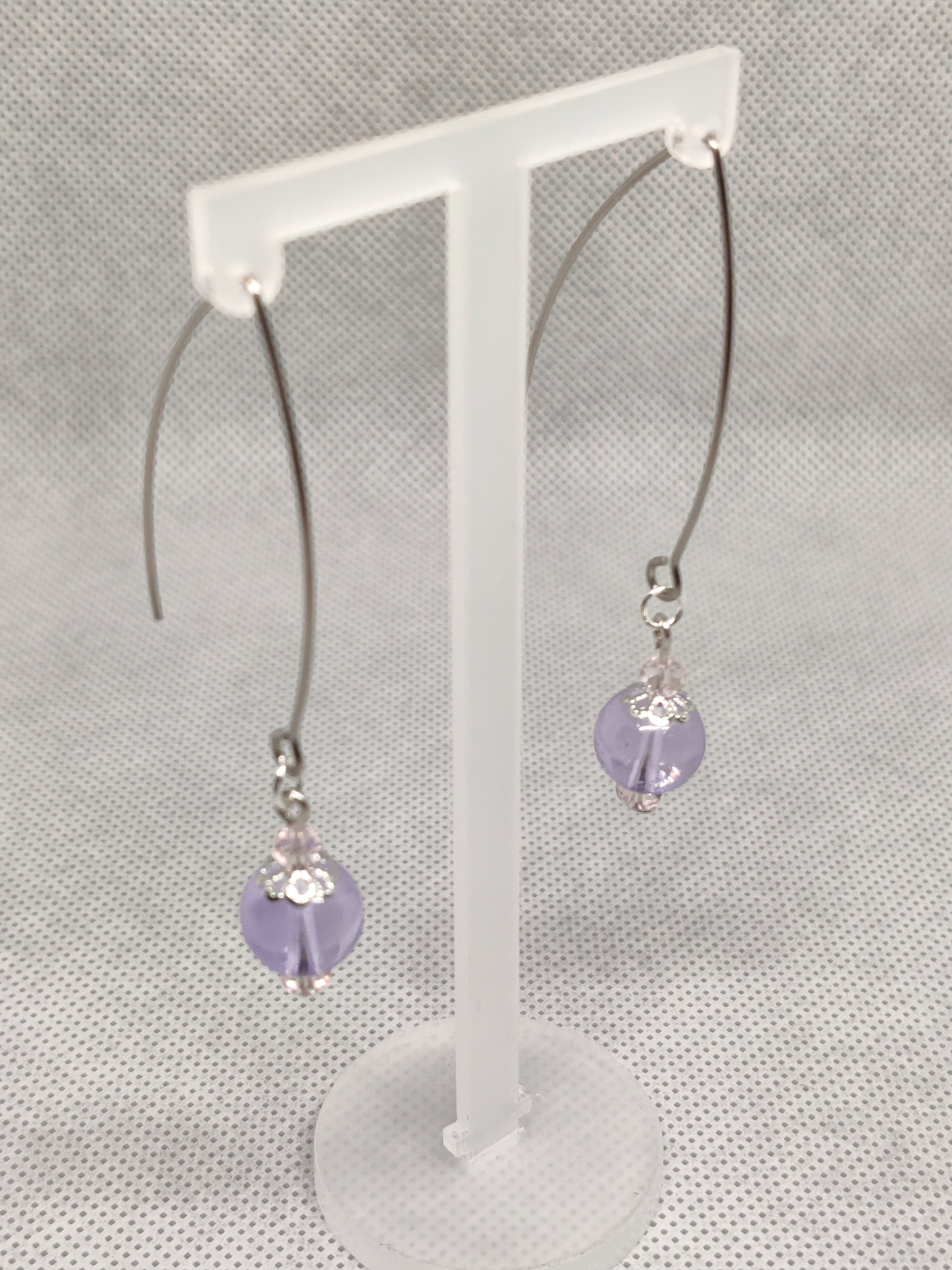 Purple Single Beads Sterling Silver Earrings